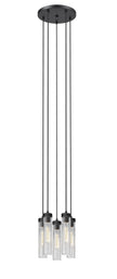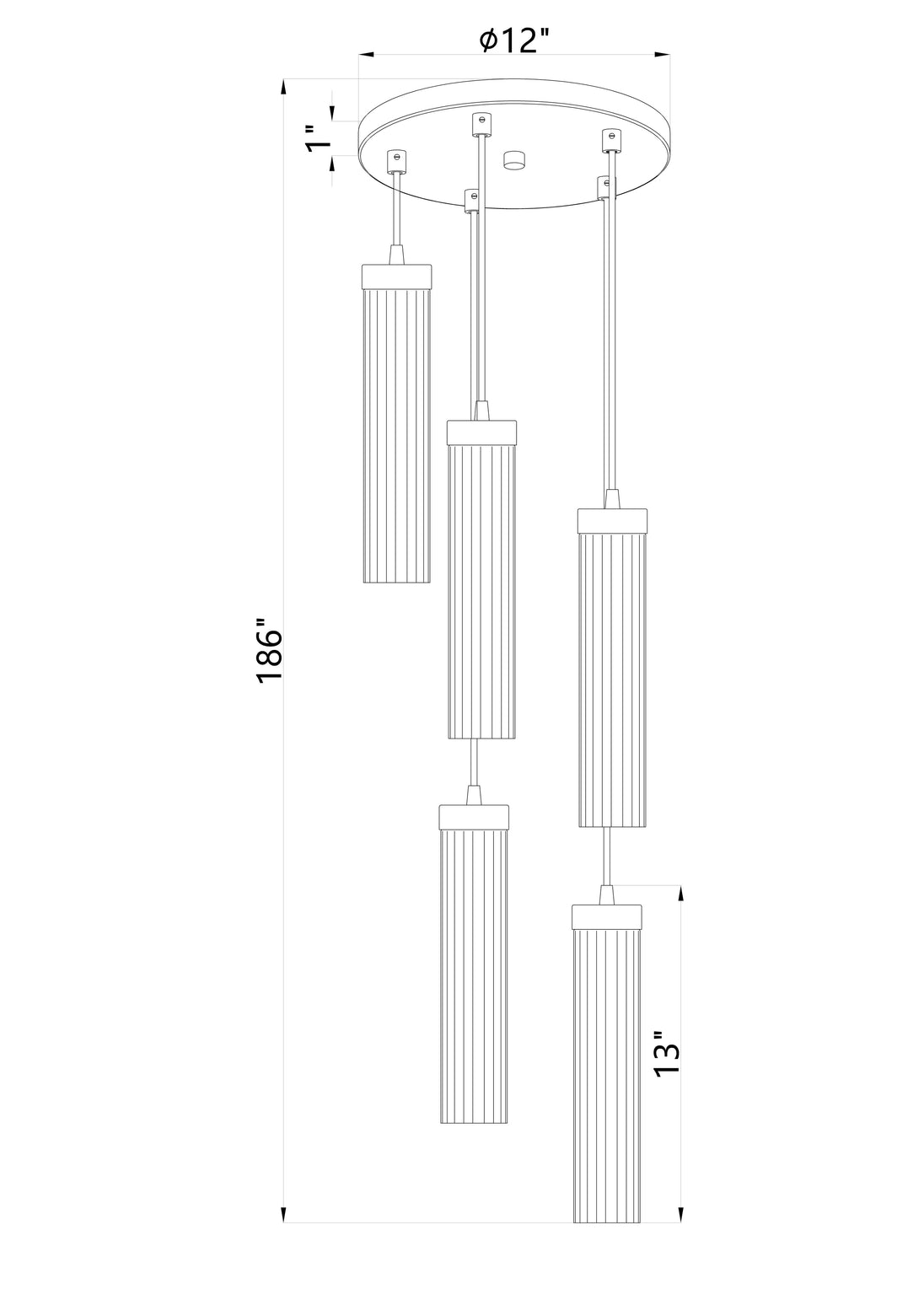 Slender fluted glass shades suspended on black cloth wrapped cords create this chic pendant and its surprisingly contrasting design elements. Three finishes are available to complement your décor, Brushed Nickel, Matte Black, and Rubbed Brass. Please note there is a rod kit available to easily convert this pendant to rod.