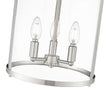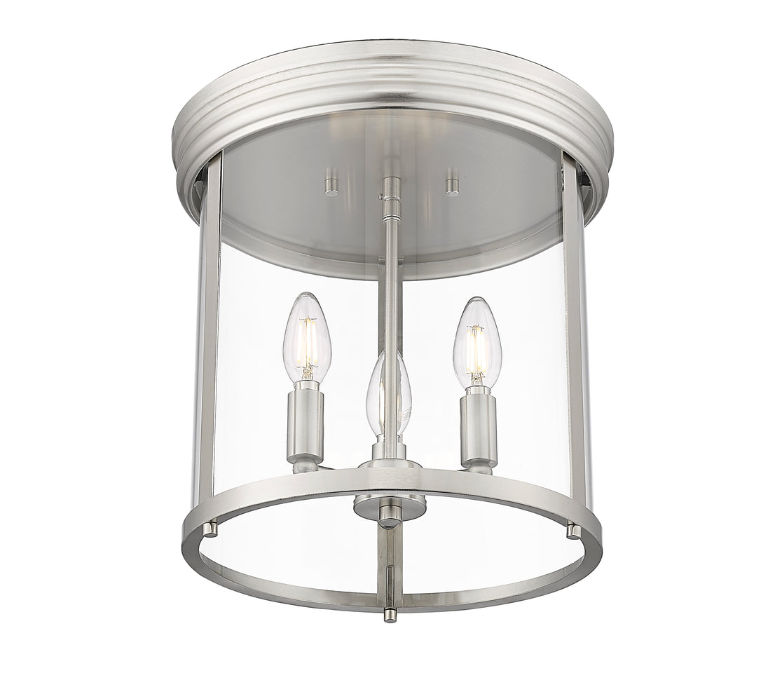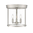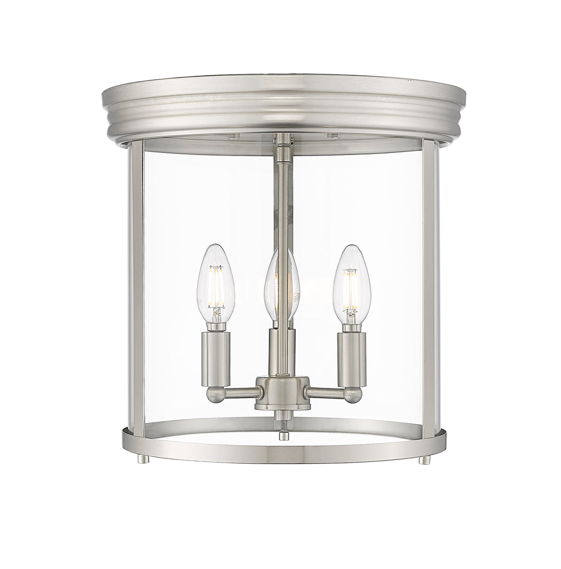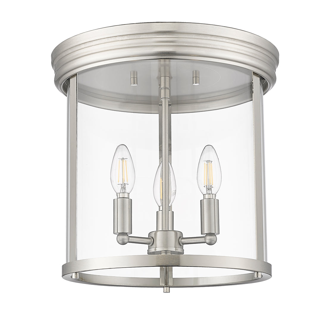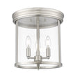 Create a rich, welcoming ambiance in your foyer or living area with a modern three-light flush mount ceiling light. Designed for the Thayer collection, it's a timeless presentation that features a sleek cylinder of glass tucked into a brushed nickel finish framework that offers refined, inviting energy in any setting.