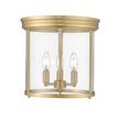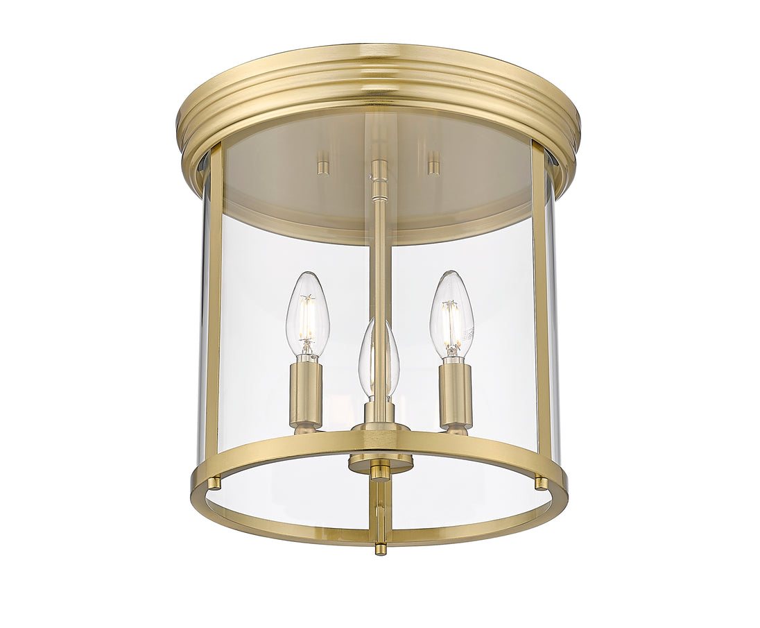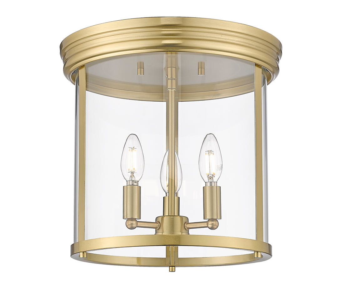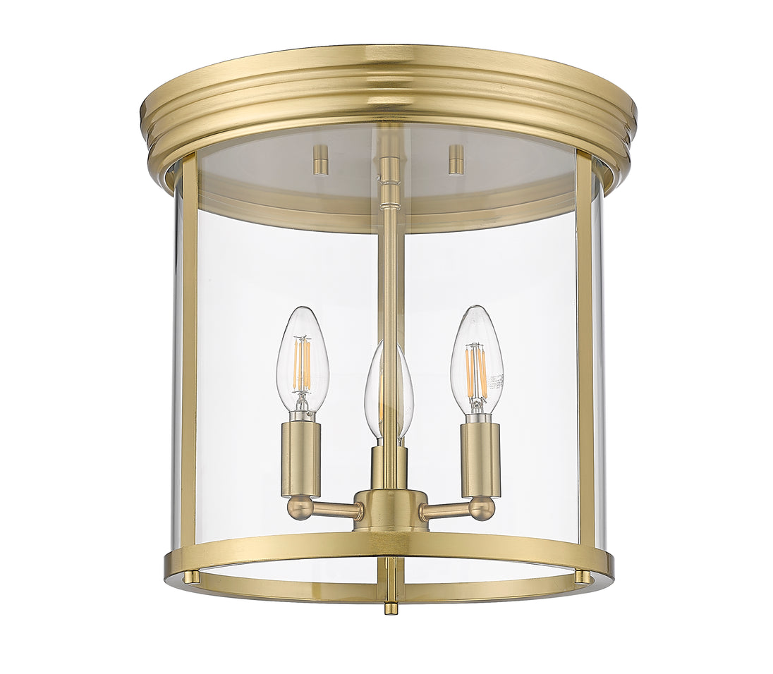 Create a rich, welcoming ambiance in your foyer or living area with a modern three-light flush mount ceiling light. Designed for the Thayer collection, it's a timeless presentation that features a sleek cylinder of glass tucked into a beautiful luxe gold finish framework that offers refined, inviting energy in any setting.
