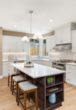 The beautiful white linen fabric shades provide a touch of elegance to the Leila Collection, flexible in design, Leila can be over a kitchen Island or as a focal point in the primary suite. It can be ordered in the following finishes to suit near every décor: Matte Black, Luxe Gold, and Brushed Nickel.