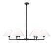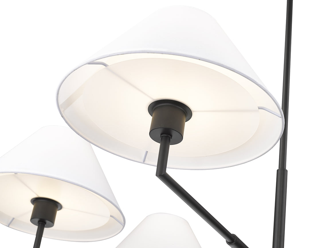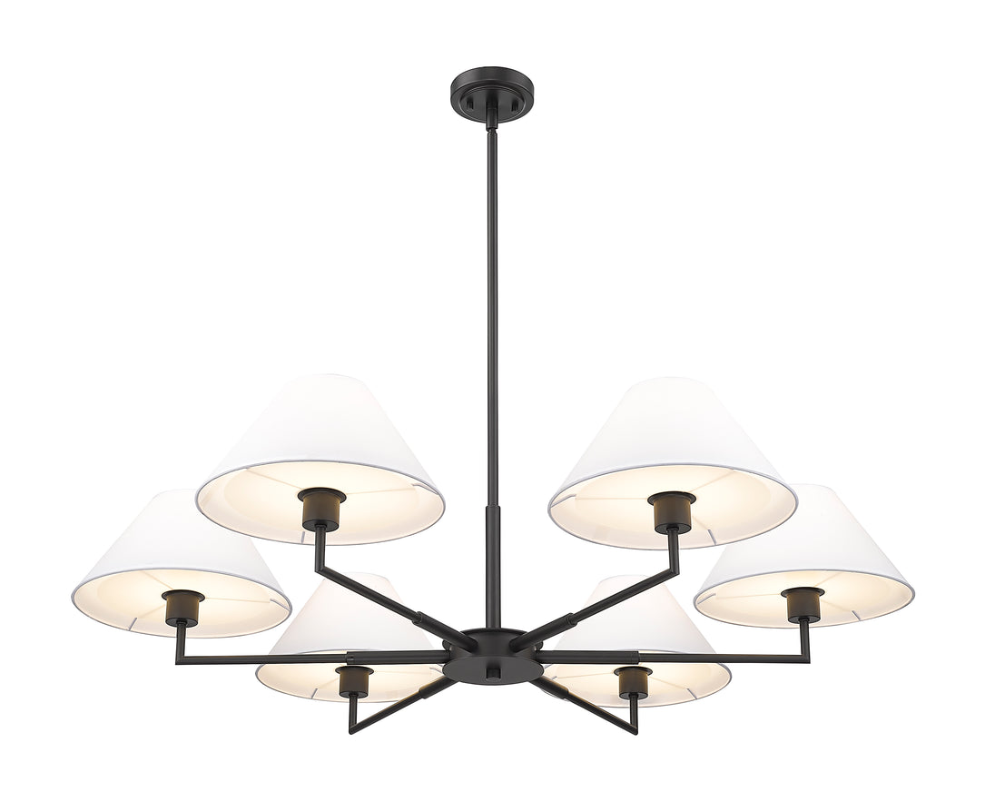 Inject a little modern simplicity into surrounding decor with a stylish six-light chandelier. In a cool matte black finish, this delightful fixture is a flexible option everywhere from your dining room to a master suite, casting warm, bright illumination while instilling radiant elegance. Its six lights are complete with empire shades for a classic touch updated with white linen for light, bright ambiance.