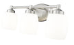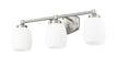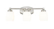 Introduce soothing style and bright illumination with a stylishly understated modern three-light vanity fixture. Its fresh curvature creates a compelling profile, enhanced with a brushed nickel finish for a refined touch. Matte opal glass shades echo the curvature of the wall plate, while delivering inviting illumination for beauty and grooming tasks.