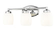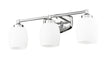 Upgrade your bathroom with a modern three-light vanity fixture. A gleaming chrome finish lends a clean, refined style, while supple curves are embraced in every aspect of its silhouette. Matte opal glass shades diffuse illumination, ensuring the right ambiance for all your morning and evening tasks.
