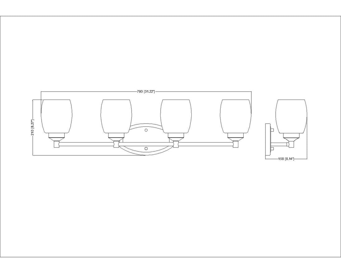 From the Kendrick collection, this modern four-light vanity fixture is a soothing choice that highlights organic curves in a compelling composition. Perfect for a generous counter space, it delivers a sleek silhouette with a brushed nickel finish that gleams in the light. Matte opal glass shades echo the rounded shape of the wall plate while assuring soft, but bright illumination for all your morning and evening rituals.