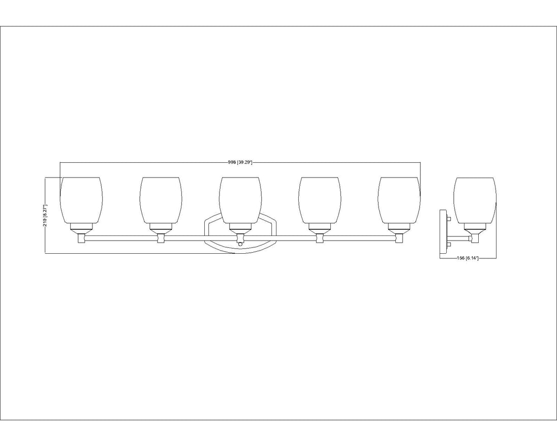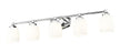 Enjoy the bright, gleaming chrome finish featured on this modern five-light vanity fixture. From the Kendrick collection, it's a charming, understated design that pairs a rounded wall plate with round shades, offering soft, inviting aesthetics to any bath. Matte opal glass delivers inviting illumination that's never harsh, perfect for morning and evening grooming.