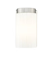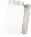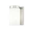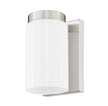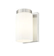 Clean precision defines the sleek lines of a modern one-light wall sconce. Beautiful in a bath or elsewhere in your home, it pairs a brushed nickel finish with lovely clear opal glass in a cylindrical shade. A thick collar and elegant rectangular wall plate complete the design with restrained character and presence.