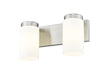 Elegant simplicity infuses every aspect of a modern two-light vanity fixture. It showcases a cylindrical shade in clear opal glass, with a brushed nickel finish gracing a rectangular wall plate and thick bands on top of each shade, creating a sleek, clean-lined silhouette that delivers beautiful illumination for all your grooming and beauty tasks.
