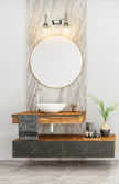 Is there anything more perfect in design than a circle? The Sutton bath series embraces the familiar shape in its backplate and echoed by the open-edge globe shades that can be mounted up or down. Available in 1- to 5-light versions in a choice of Matte Black, Brushed Nickel, Chrome, and Olde Brass finishes.