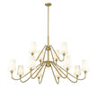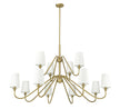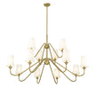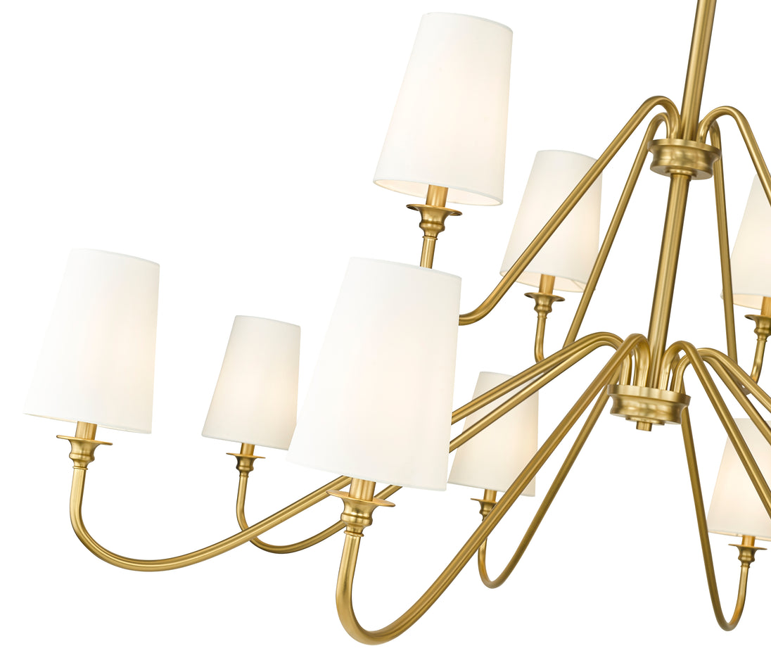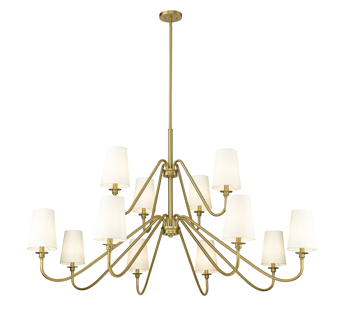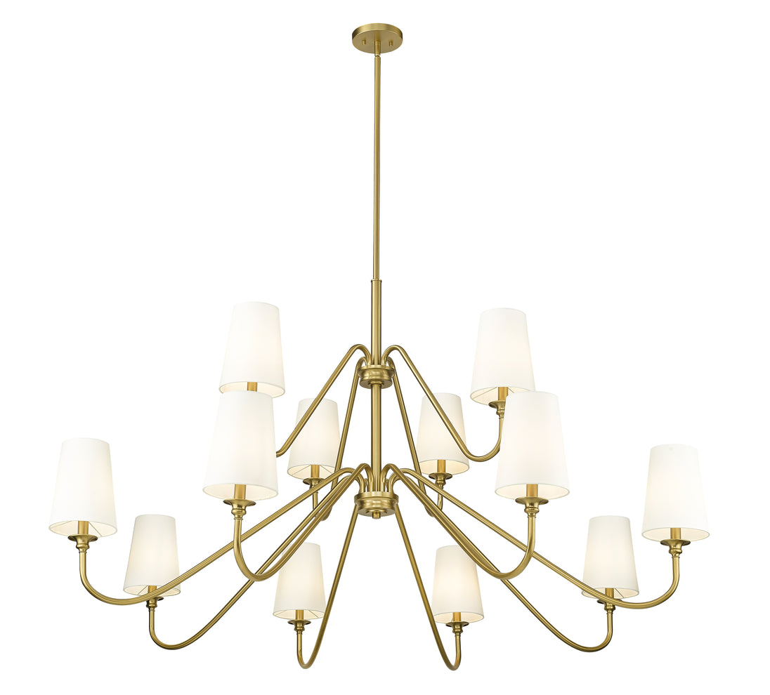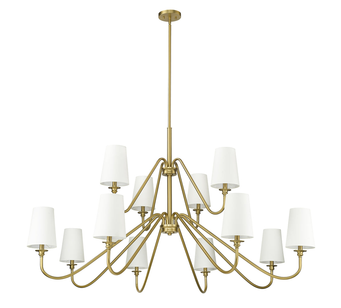 Maintain an airy ambiance while illuminating a large area with this striking modern 12-light chandelier. Its two-tiered silhouette features swooping arms capped with opaque white shades , offering chic style in a modern gold finish. Simply beautiful over a dining table or in your foyer.