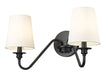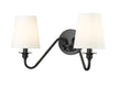 Put the finishing touches on a welcoming entry or living room with a modern two-light wall sconce. From the Gianna collection, it's a simple, sleek silhouette featuring two curved arms and a round wall plate, all in a classic matte black finish. A pair of conical shade in opaque white create the perfect ambiance for modern living.