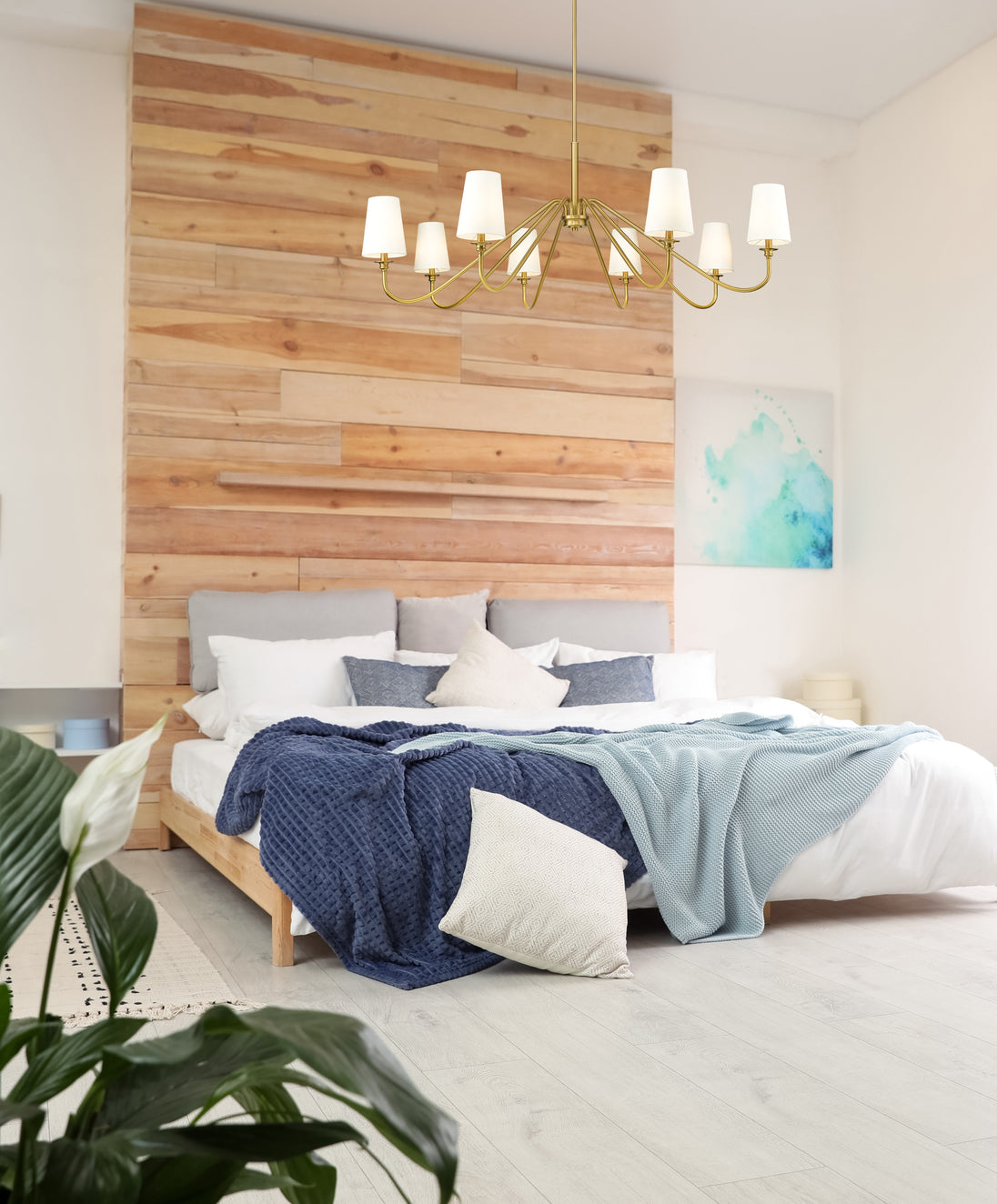 Swooping arms bring modern minimalism to a chic eight-light chandelier. From the Gianna collection, it's a compelling, pared-down look that prioritizes elegance and beautiful illumination with opaque white shades and a modern gold finish that lends just the right touch of glamour.