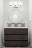 With its geometric presentation of stacked opal glass rectangles, the Annalise collection provides a powerful style statement that easily complements transitional, contemporary, and modern bath settings. The classic backplate anchors the look with a choice of timeless finishes in Brushed Nickel, Chrome, Matte Black, or Modern Gold.