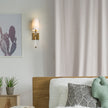 Sophisticated and tasteful design elements blend rubbed brass and brushed nickel finish steel with crystal accents and a fresh white fabric shade, making this single-light wall sconce an optimal choice for a modern or transitional space. Perfect for a bathroom and vanity, bedroom, or hallway, this elegant light captures the traditional lamp design with modern twists and offers extraordinary versatility.