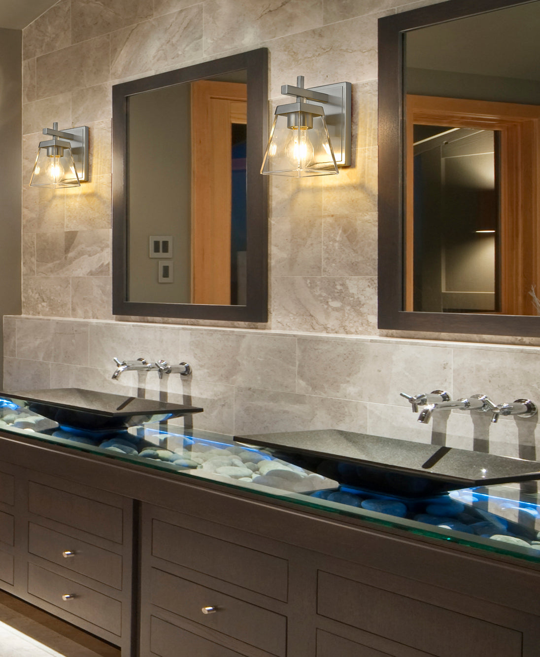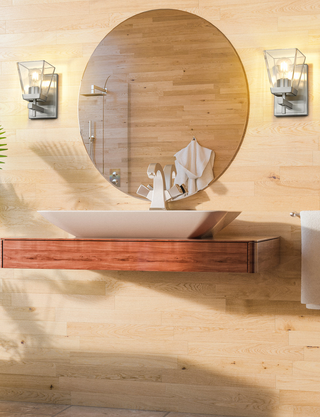Despite its simple appearance, the clean design is anything but easy to achieve — but the Lauren bath series delivers it’s Zen-like aesthetic, a smooth, even finish paired with unique glasswork with ease to complement almost any design style, the Lauren works especially well in baths with a spa/wellness theme or modern Asian flair. Mounting up or down, Lauren is offered in 1- to 5-light versions in a choice of Brushed Nickel, Chrome, and Matte Black finishes.