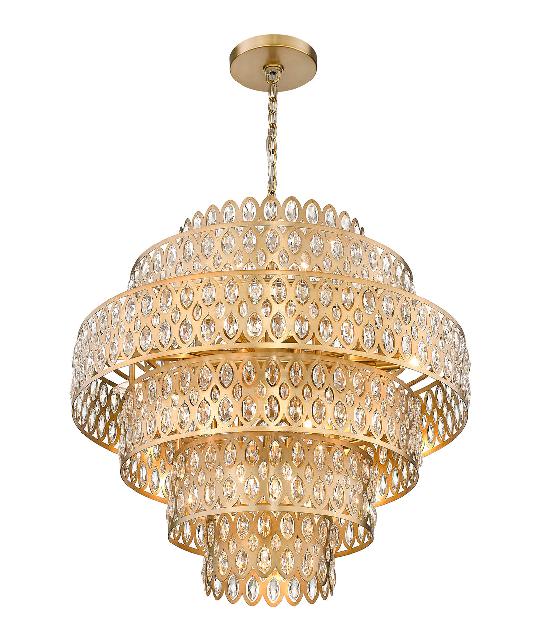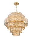 Briming with treasured glamour and elegance, this Dealey collection 17-light pendant delivers an impressive six-tiered design that glitters over a staircase or in a grand dining room. Each tier features an heirloom brass finish drum complete with oval cutout filled with sparkling crystals that create a magical ambiance that takes surrounding decor to new design heights.
