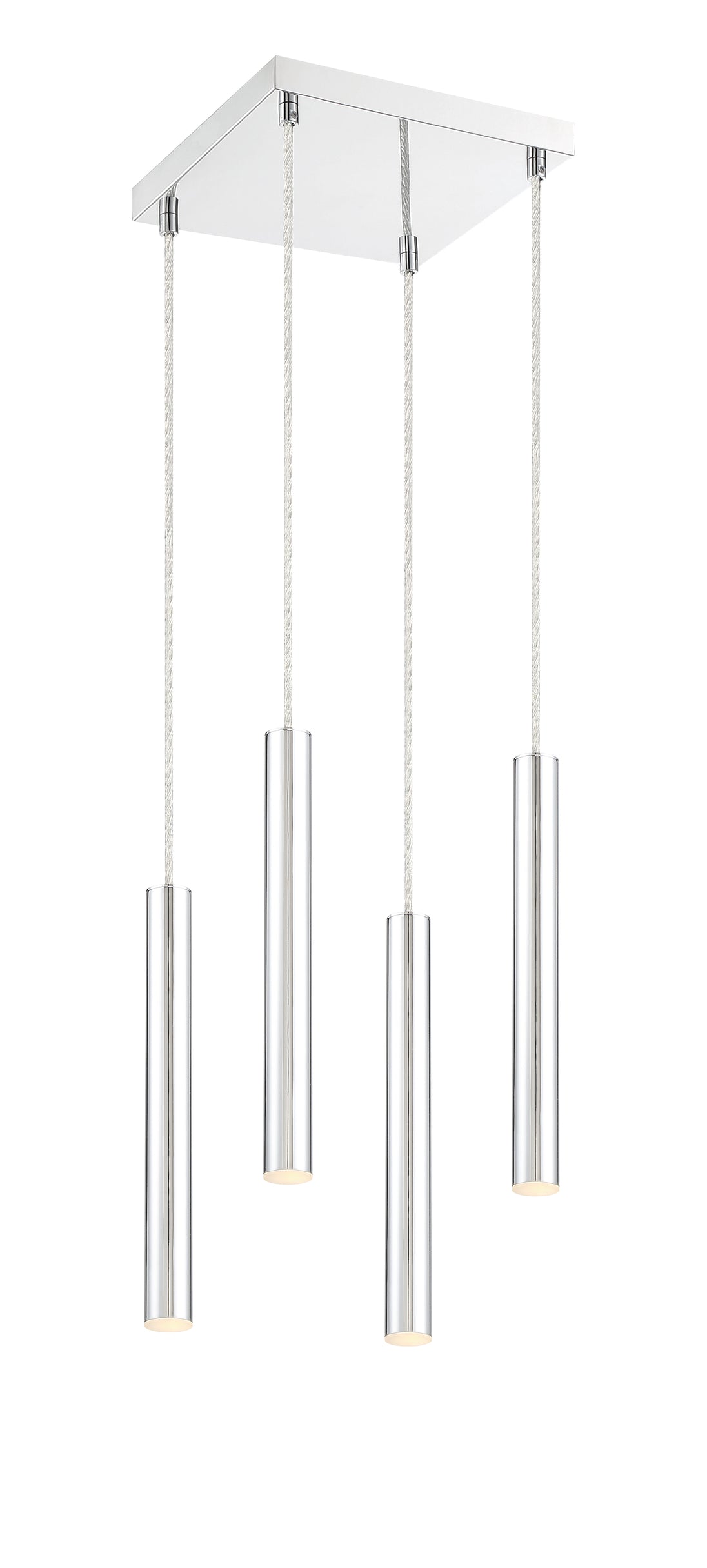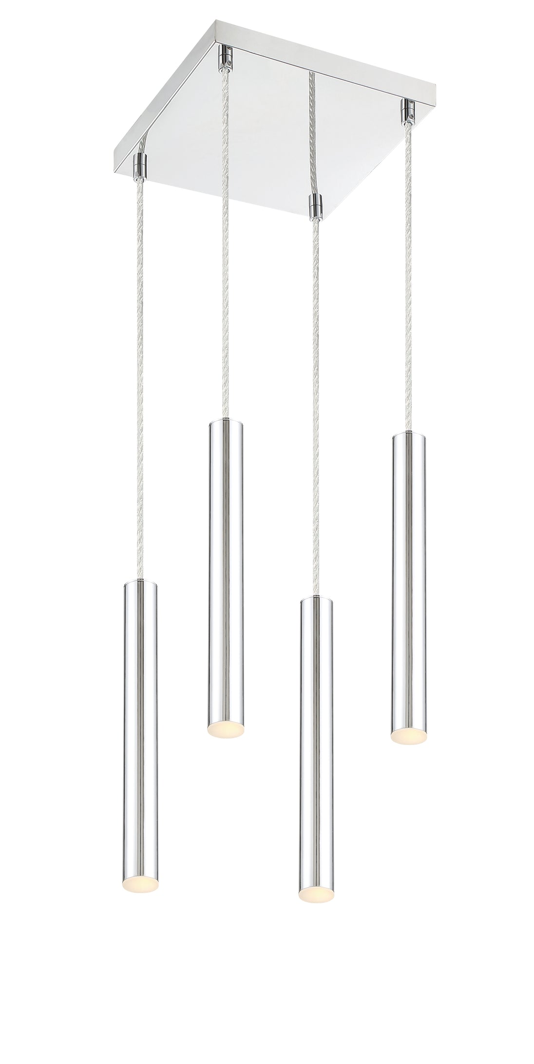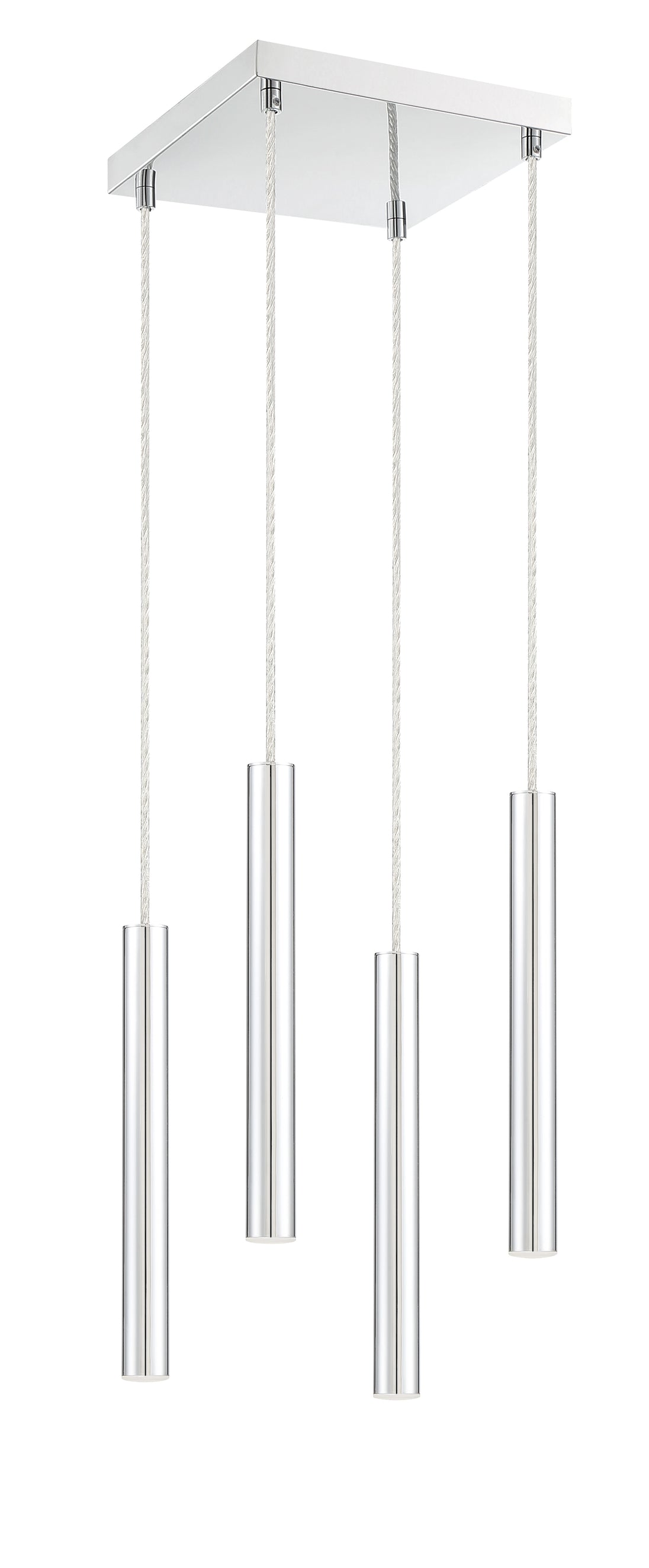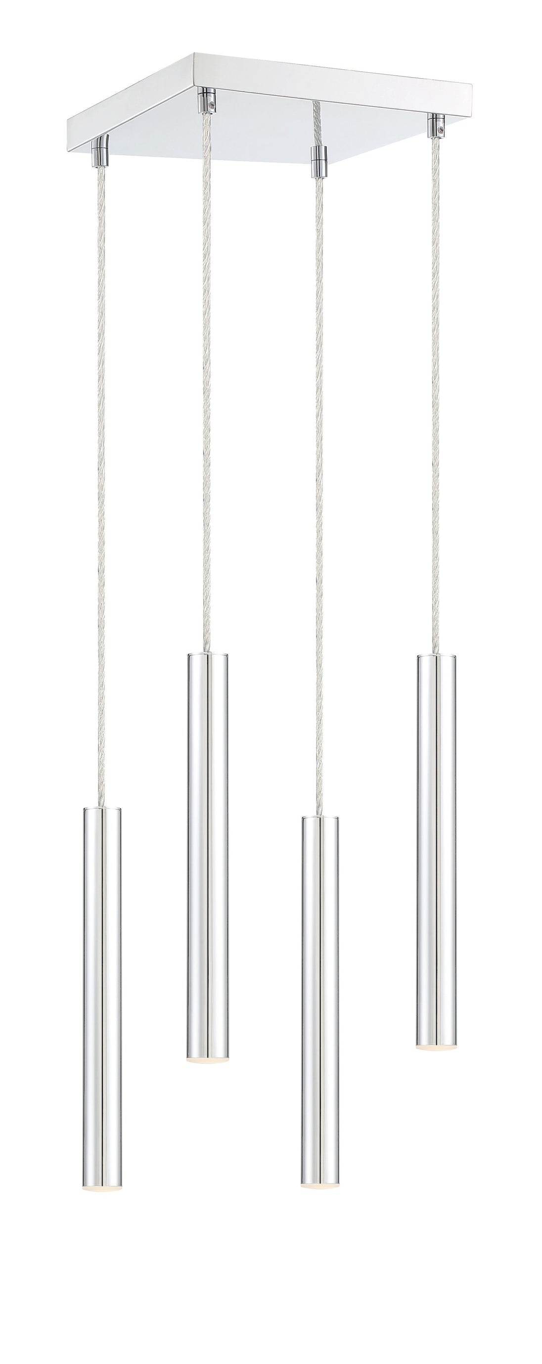 The elongated lines from this four-light pendant light create a radiant focal point. Brilliant and shiny, the chrome finish adds an extra layer of sleekness.