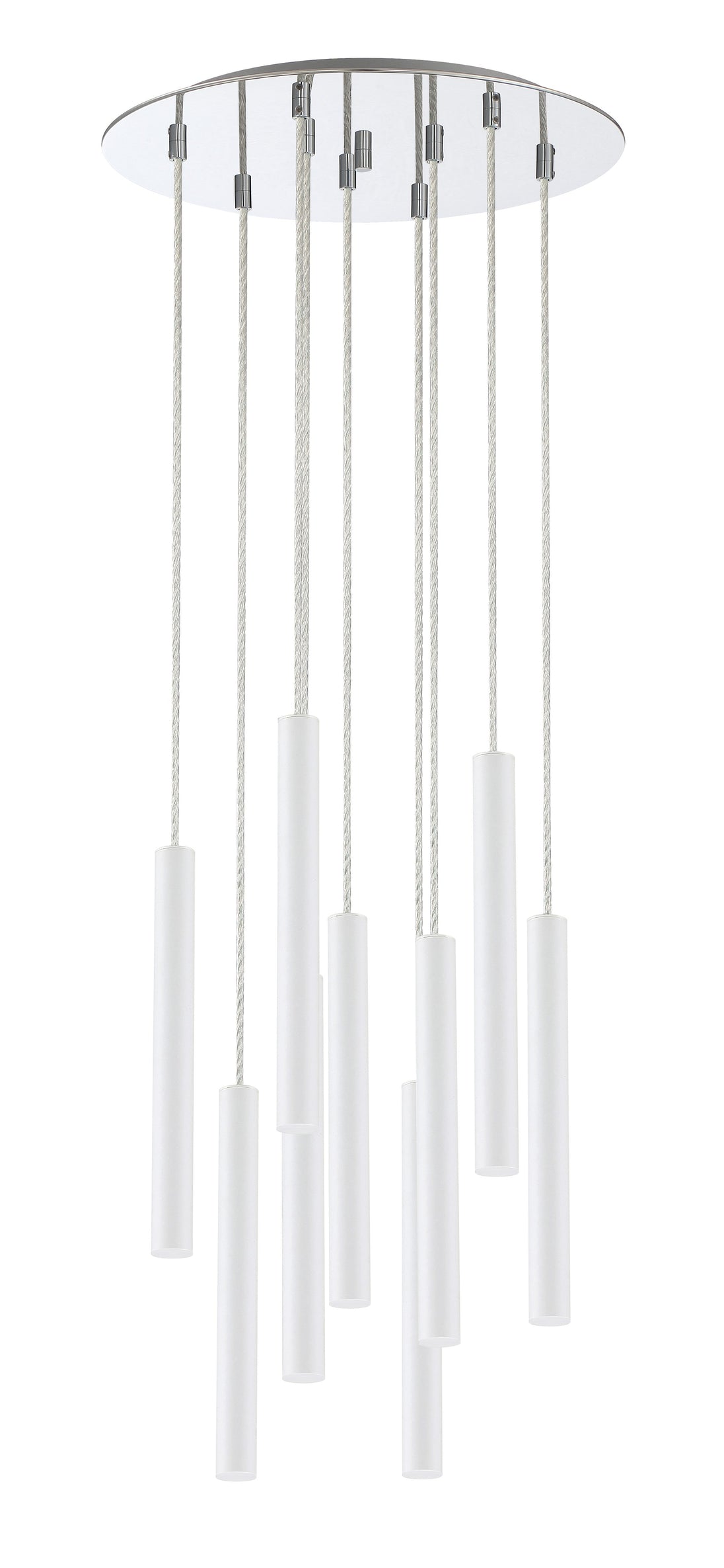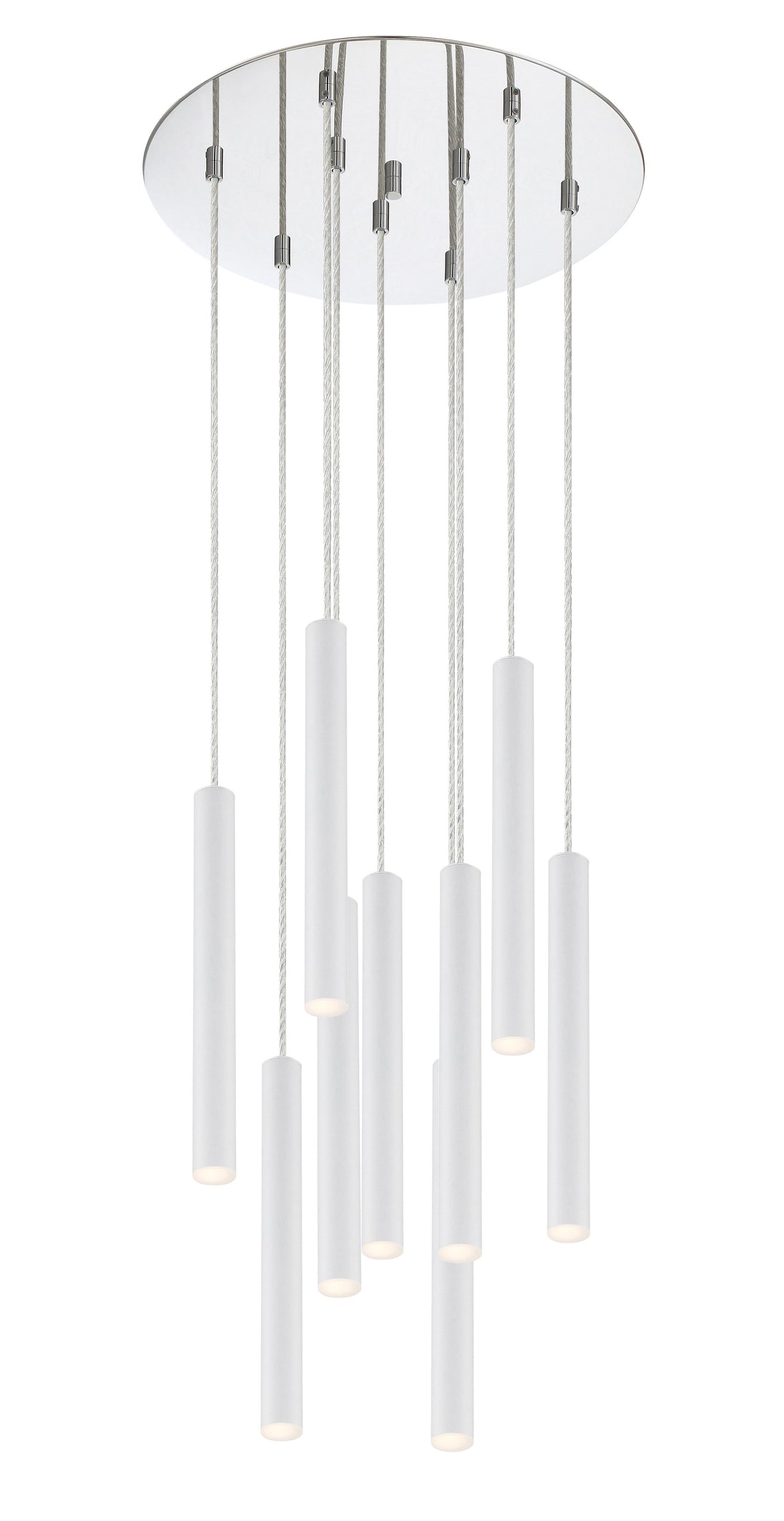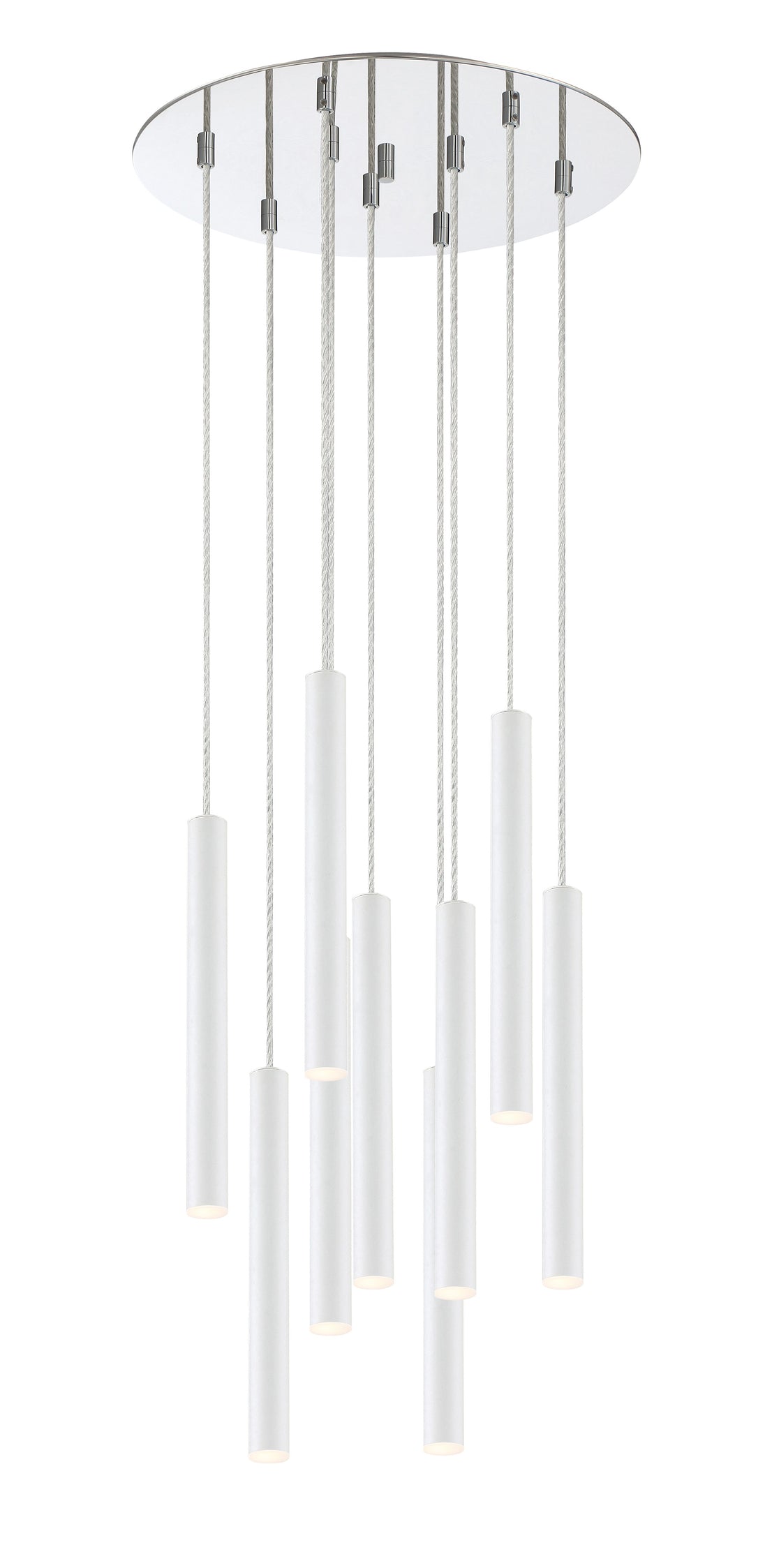 Sleek and clean, this nine-light pendant light features a windchime-inspired silhouette. The smooth lines of the silhouette boast a streamlined matte white finish.