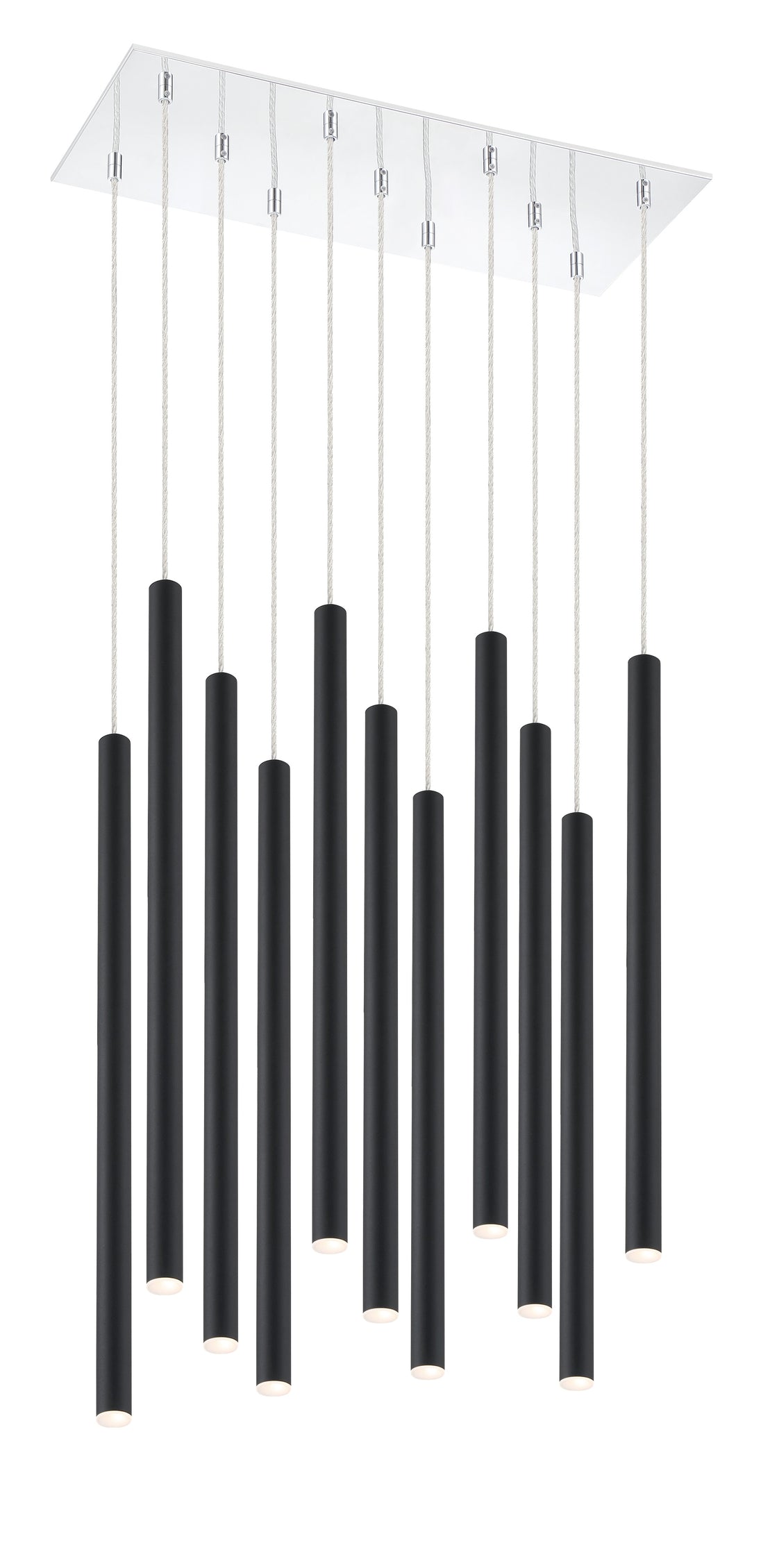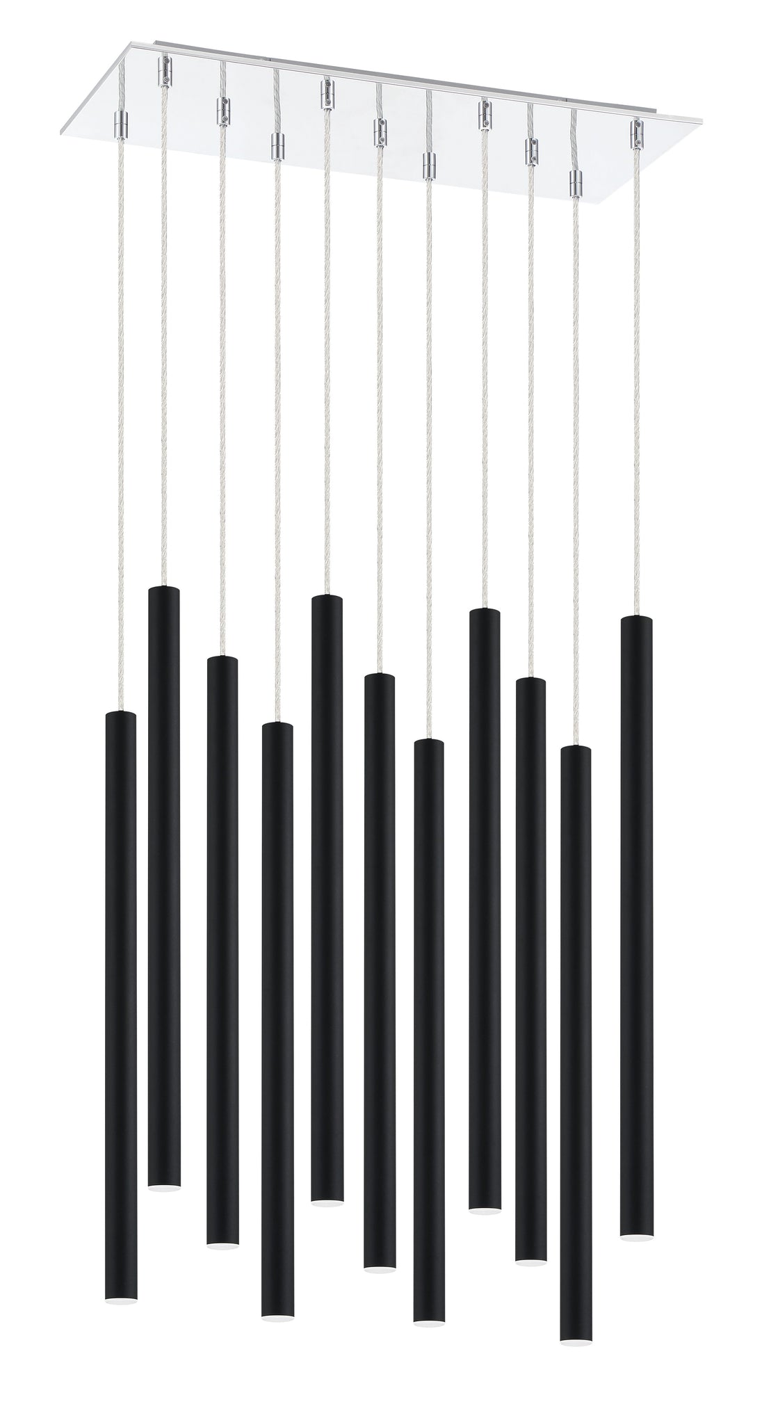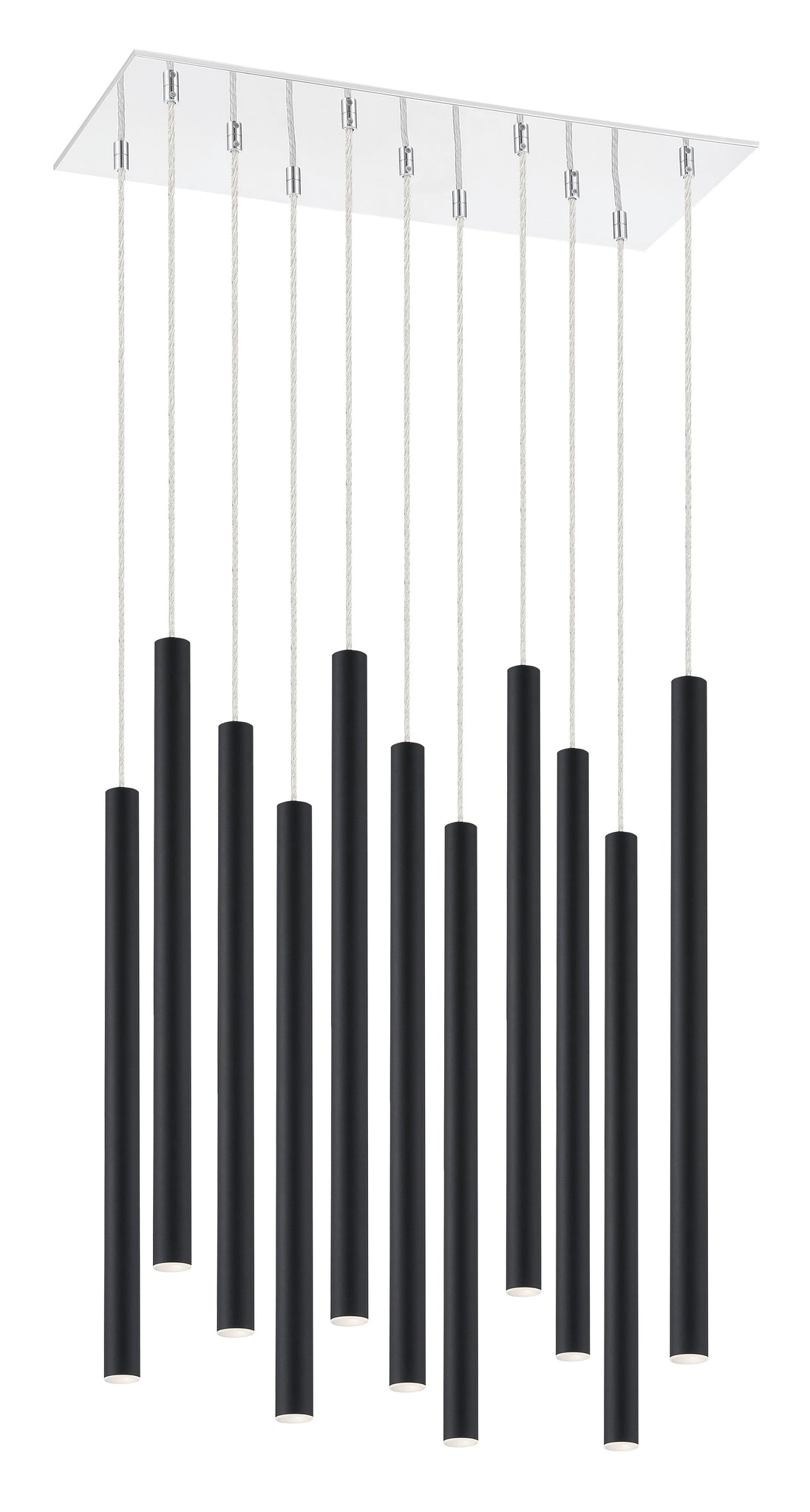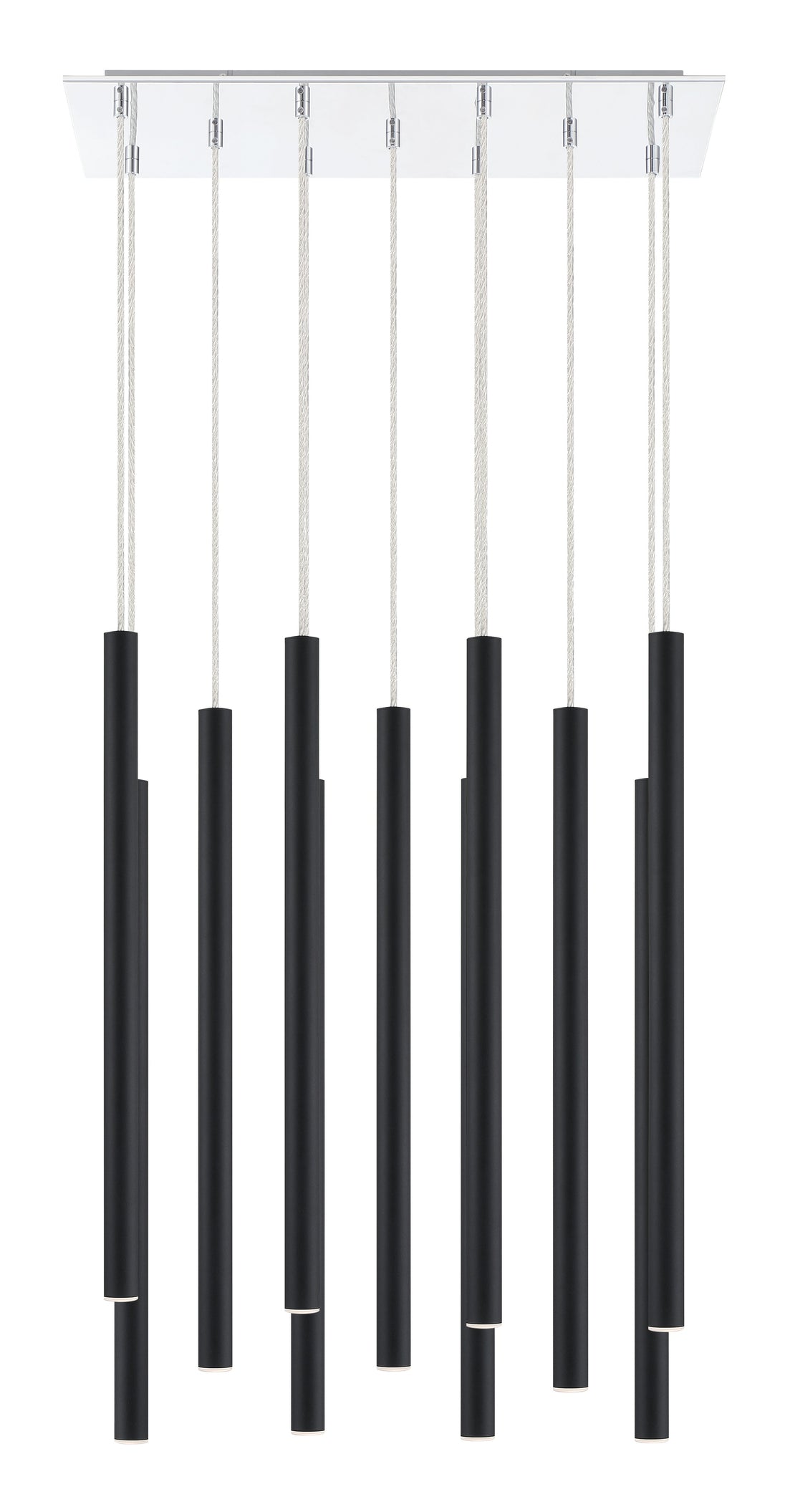 Stylish and elongated, this eleven-light pendant light features a matte black finish. Refine a dining or living room with the streamlined sophistication of clean lines.