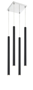 Add an interesting visual to a modern space with the windchime-inspired silhouette of this four-light pendant light. Elongated and contemporary, a sleek black finish streamlines while adding up-to-date style.