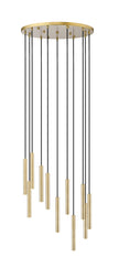Instill a sense of drama and depth over a staircase or foyer with this modern 11-light chandelier. It's a clean, precise design that pairs staggered hanging heights with integrated LEDs that are both dimmable and energy efficient. Its round canopy and slender light housings showcase a modern gold finish, adding the perfect dash of warm sophistication.