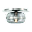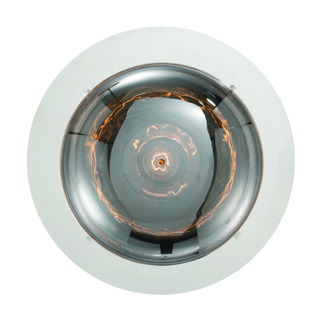 A band encircles each glass orb that beautifully reflects a warm glow from the vintage lights within. The metal support creates an inviting counterpoint to the austere design