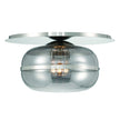 A band encircles each glass orb that beautifully reflects a warm glow from the vintage lights within. The metal support creates an inviting counterpoint to the austere design