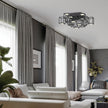 Inspired by shadow box wall art, multiple cubes outlined by plated-gold frames are positioned in dimensional patterns and illuminated by LED panels to create a dramatic visual effect.