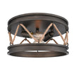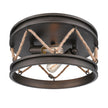 Inspired by the sea, this coastal collection features a simple design with authentic, nautical details. Tied in sailor's knots, woven ropes loop metal cleats before being suspended from maritime hooks. The contrast between the available finish options and texture of the rope and metalwork creates visual interest. This look is perfect for seaside retreats, casual lofts, and rustic bungalows. This 2-light flush mount is open at the bottom to cast widespread, ambient light.