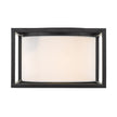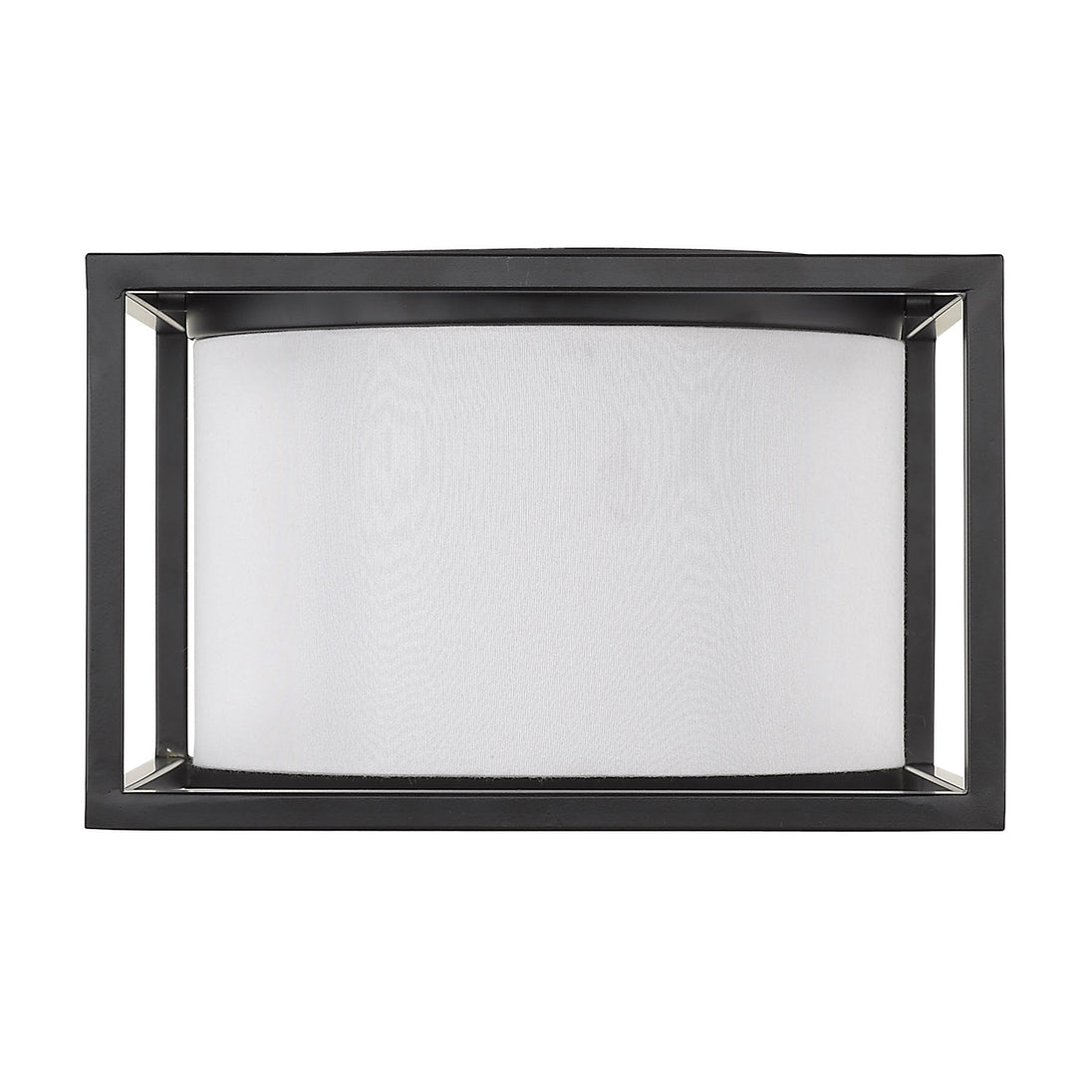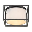 This simple and versatile look is at home in transitional to modern settings. The smooth, matte black finish adds a contemporary feel. The neutral white shade dresses up the look, while softening the geometric lines and gently diffusing the light. This 2-light flush mount creates a generous open area for widespread ambient lighting.