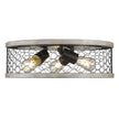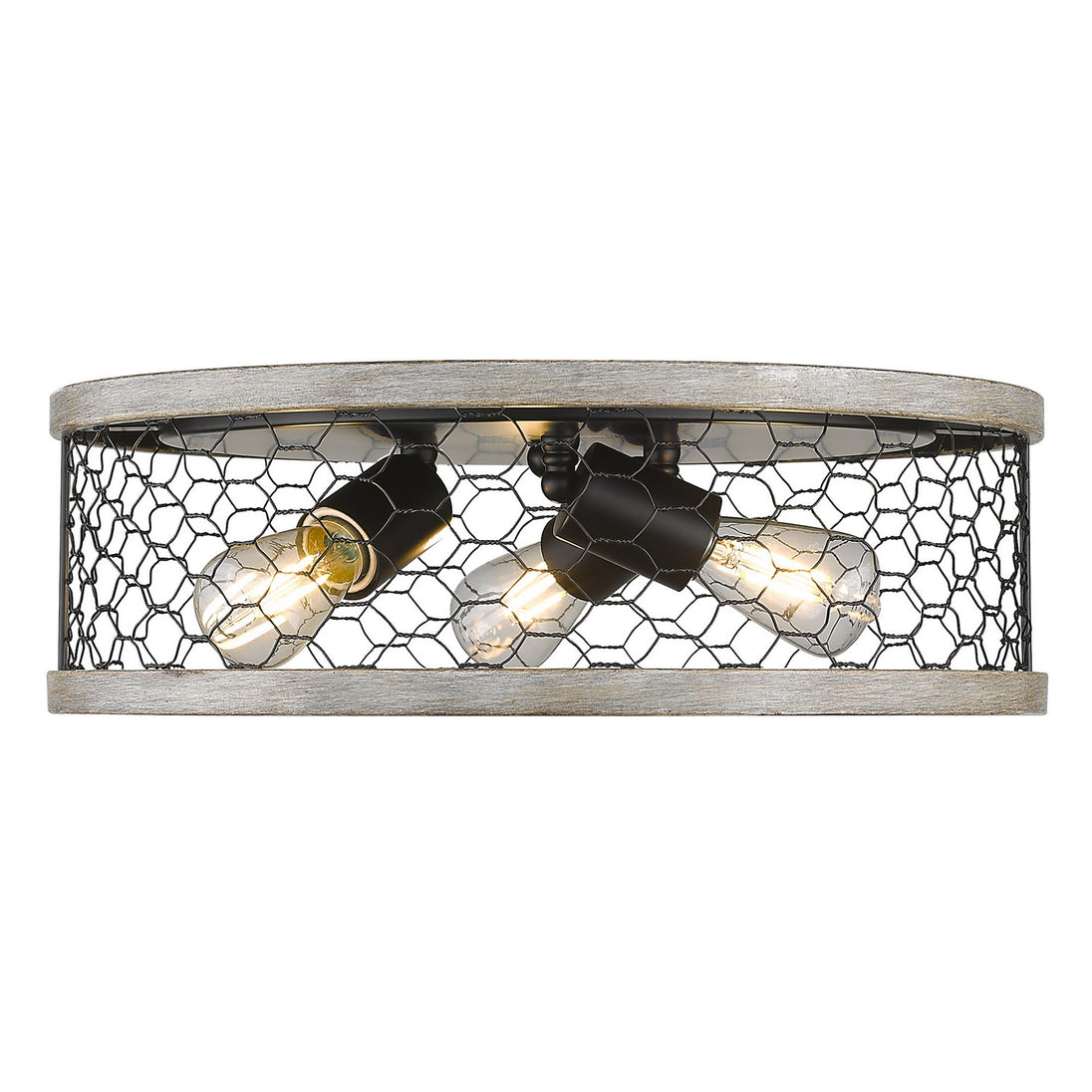 The Bailey collection brings casual, rustic styling to any space. On-trend with modern country interior design, this fixture is perfect for homes with farmhouse décor. The open bottom shade features rustic chicken wire held together by a hand-painted faux wood frame. The faux wood frame contains hints of gray and brown hues. Add a bit of country-chic style to any bathroom, kitchen, living room, entry, or hallway.