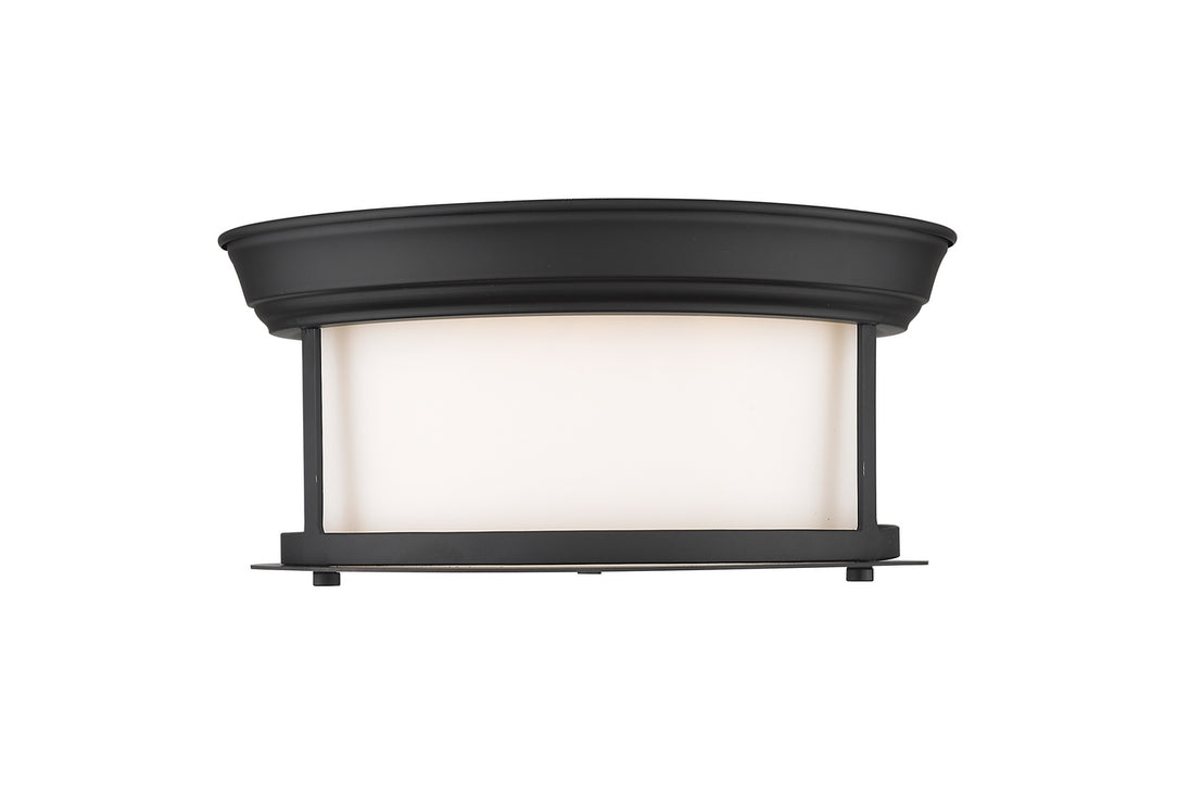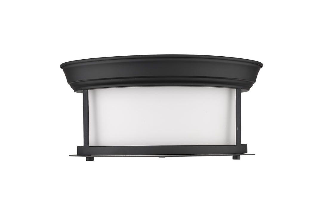 Let classic design create sophistication in a transitional living space. A wide cylindrical clear seedy glass shade nested in an open metal frame with a sleek Modern Matte Black finish make this two-light flush mount ceiling light a perfectly adaptable and tasteful lighting solution.
