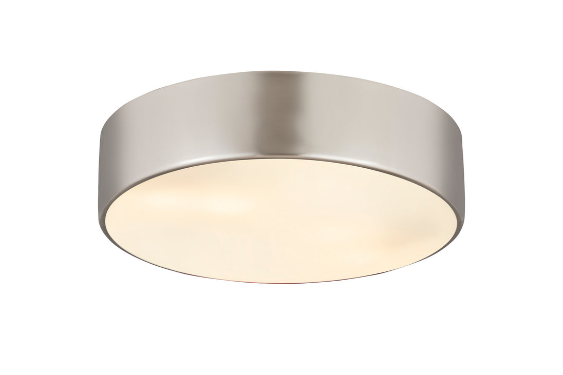Take a page from casual style by illuminating a modern space with the Harley flushmount metal drum ceiling light. This four-light ceiling light offers plenty of lighting in a kitchen, dining area, or main living space, maintaining an easy style. With a sleek brushed nickel finish steel shade, it's versatile and dynamic.
