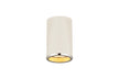 Light, simple elegance enhances the design of this modern dimmable flush mount ceiling light and its cylinder profile with a two-tone finish. Blending matte white metal with chrome finish trim, its single light offers targeted illumination to a contemporary entryway, bedroom, dining area, or main living space.