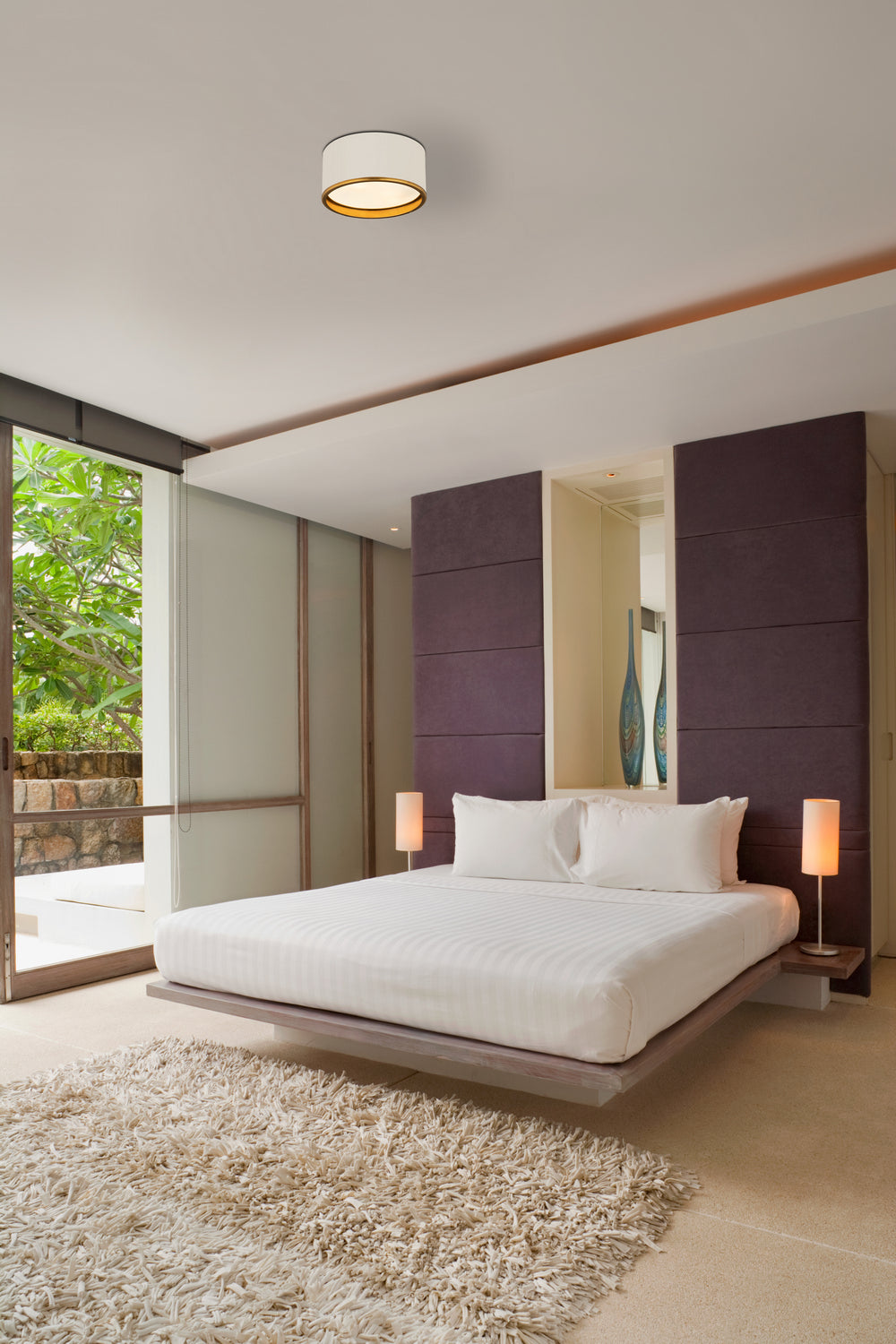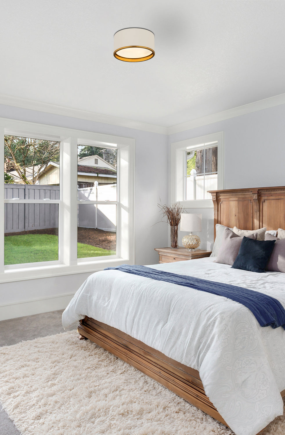 This two-tone metal flush mount light presents a sleek and smooth impression. Perfect for a hallway, home office, or small foyer, this matte white lamp with rubbed bass trim is simplistic yet stylish.